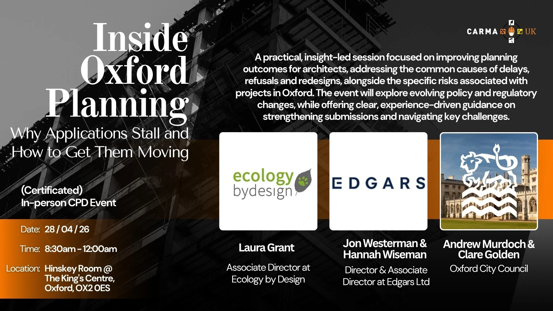 This session is designed specifically for Architects working in and around Oxford who want true insight into the real issues affecting scheme progression.