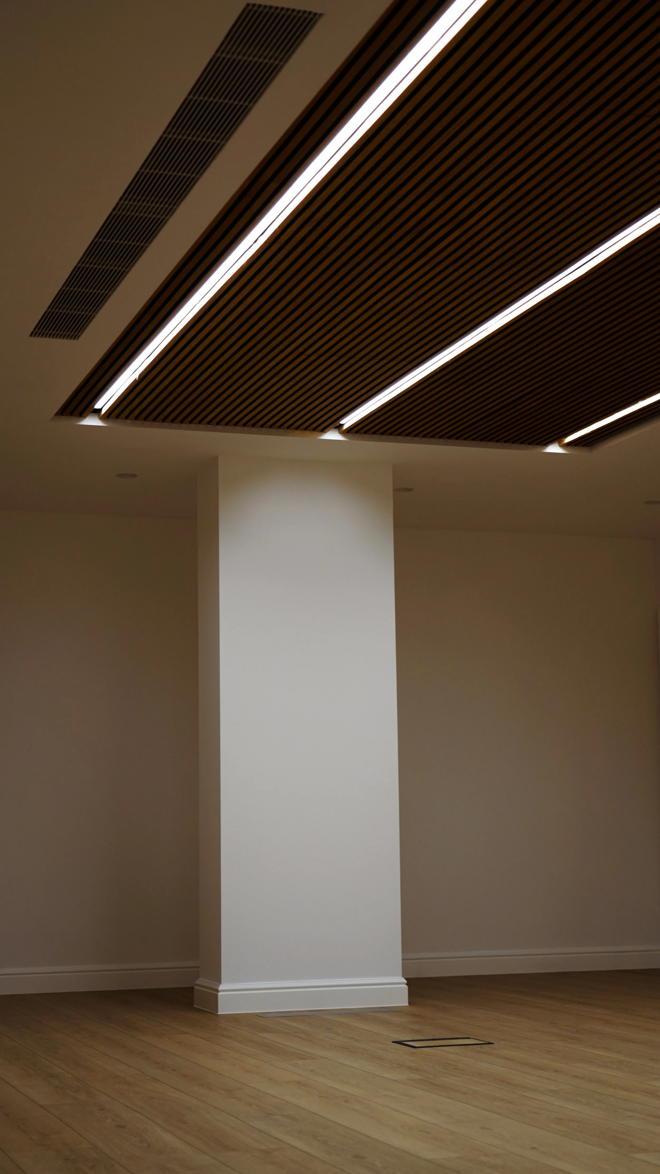Dropped ceilings were introduced to conceal services within the exposed concrete frame, while also accommodating discreet curtain tracks and indirect lighting details. These interventions allowed the architecture and interiors to feel calm, refined, and cohesive, unifying the home into a contemporary setting that combines functionality, comfort, and understated elegance.